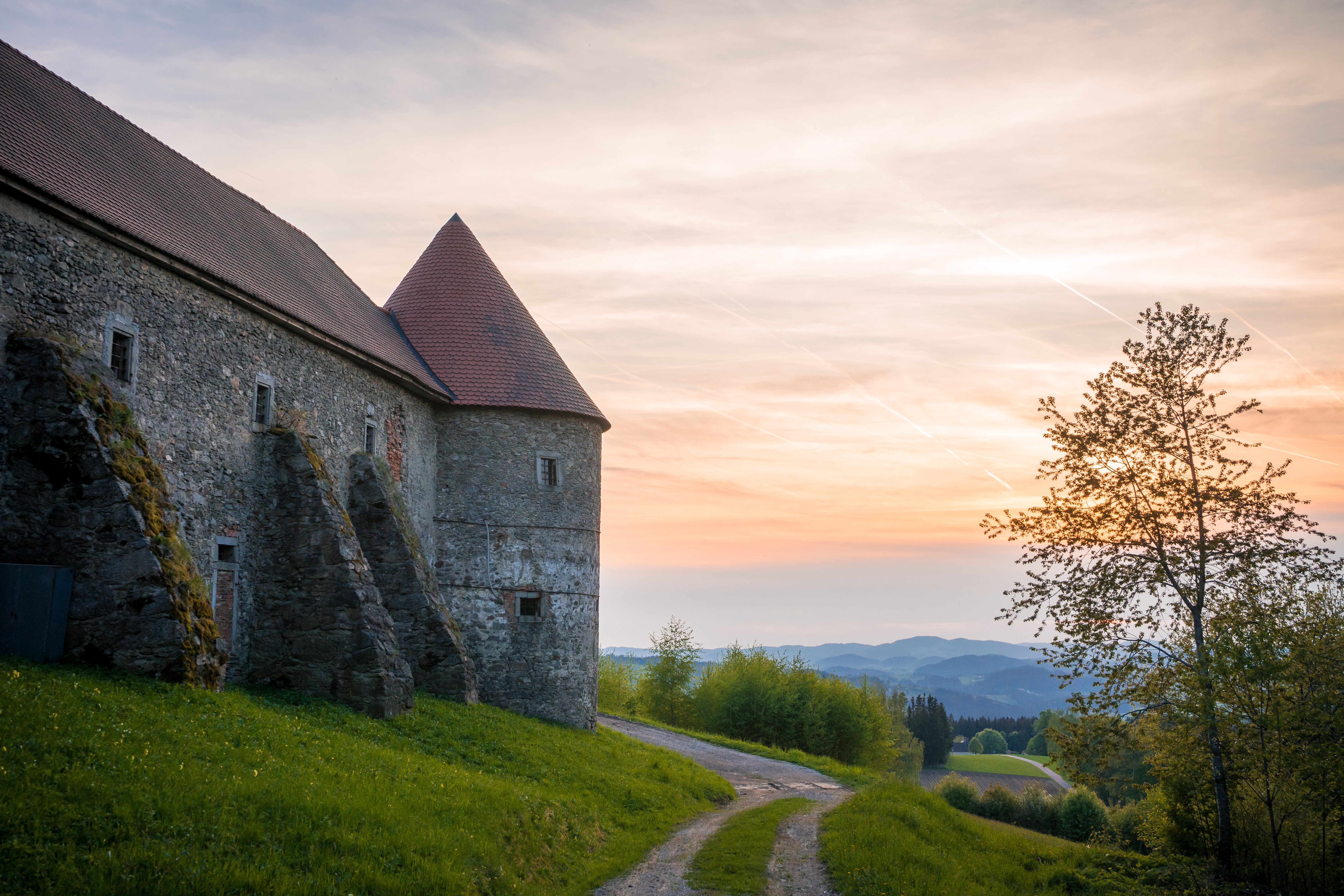 Piberstein Castle, an enchanting fortress nestled in the scenic landscape of Austria, showcases striking medieval architecture and is surrounded by lush greenery, exuding a sense of timeless elegance and history.