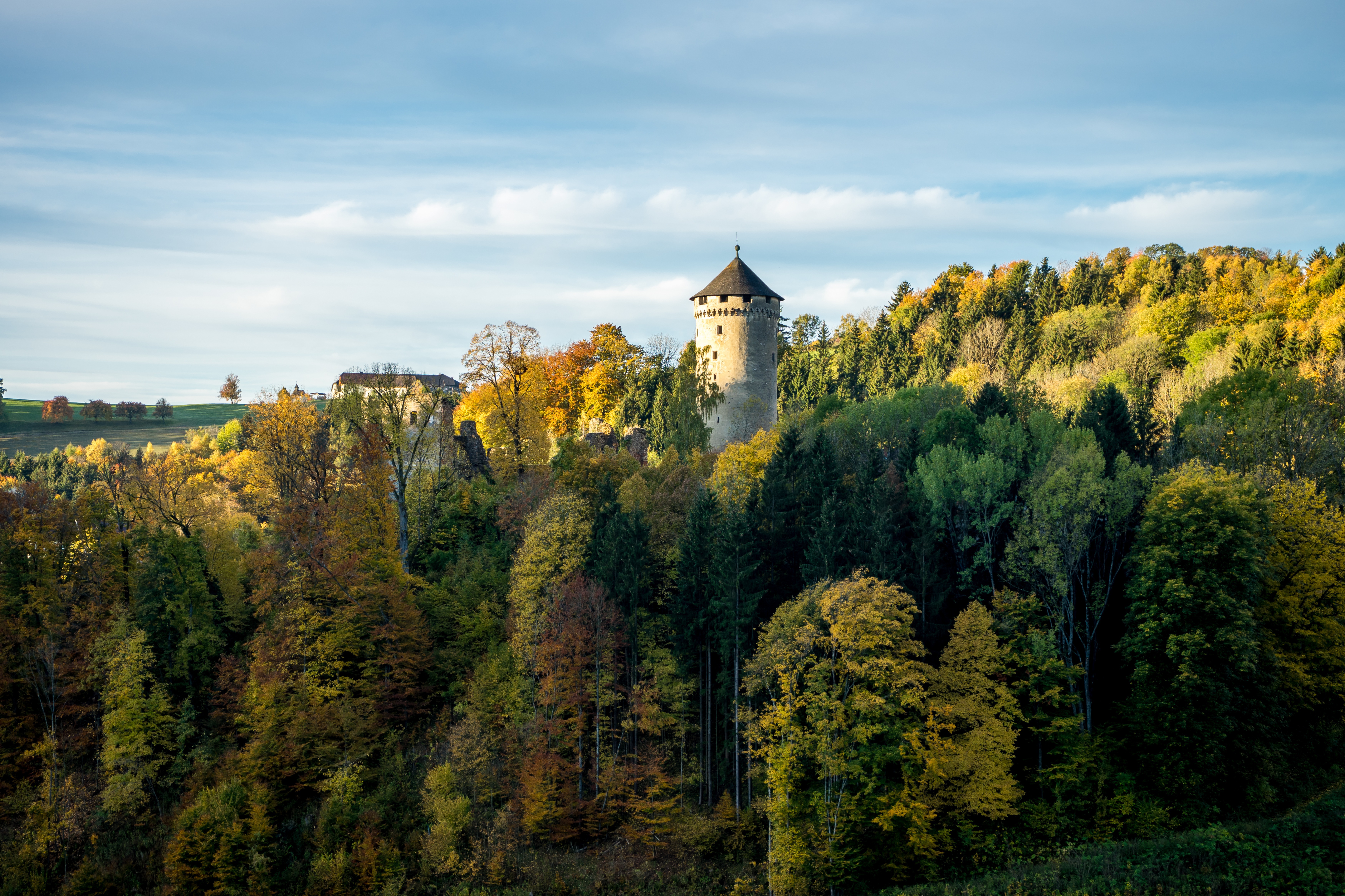 Set on a wooded hill above the surrounding countryside, this medieval stronghold, Wildberg Castle, has watched over the region for centuries. Its earliest foundations date back to the High Middle Ages, when local nobles fortified the area to secure important routes through Lower Austria. The structure originally served both defensive and administrative purposes, anchoring the authority of its feudal owners. Throughout the 13th and 14th centuries, various noble families expanded the fortifications to keep pace with changing warfare. Stone walls, towers, and a fortified courtyard were gradually added to strengthen its protective capabilities. By the late medieval period, the site emerged as a small but influential seat of local power. Periods of conflict and territorial disputes brought both damage and rebuilding over the centuries. During the Renaissance, some of the interiors were updated to provide more comfortable living spaces. The castle became less militarily important over time, yet it remained a symbol of local noble lineage. Ownership changed hands multiple times, with each proprietor contributing minor structural or decoartive modifications. As the centuries progressed, parts of the complex fell into disrepair, reflecting shifting priorities and political changes in the region. Restoration efforts in the modern era helped preserve key architectural features and stabilize the remaining structures. Visitors today can still sense the layered history embedded in its walls and surviving fortifications. Standing quietly above the landscape, the site offers a glimpse into Austria's feudal past and the resilience of its historic architecture.
